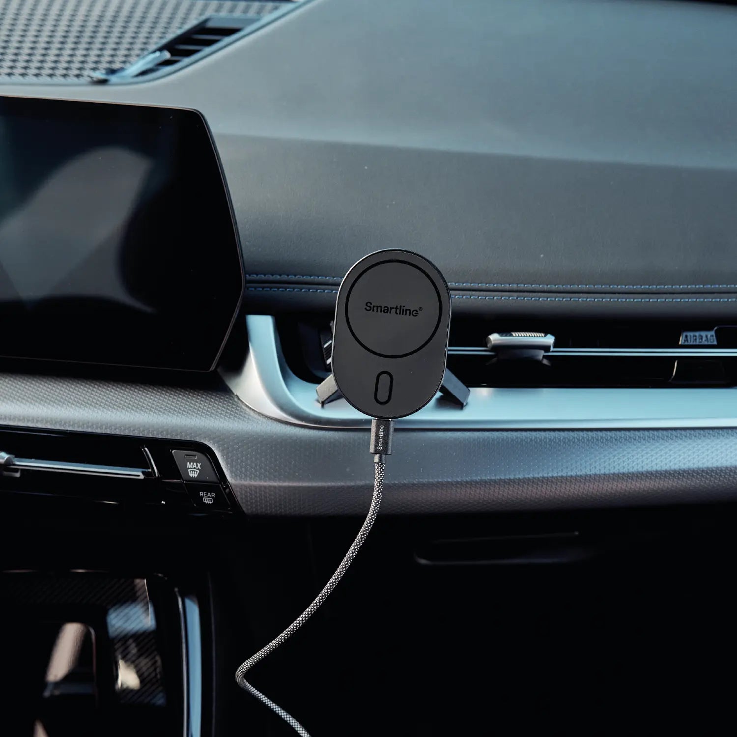 Charge your iPhone smoothly and safely while driving with this MagSafe charging pad for your car. With a wireless output of up to 15W and designed for vent grills with flat blades, it offers a stable and fast charging experience. Perfect for models such as iPhone 12 and later.